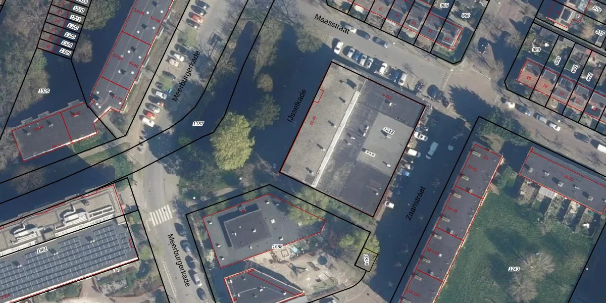 Het adres is gelegen op perceel 1244 in de sectie Q en de kadastrale gemeente Leiden. De kadastrale aanduiding is aldus LDN01-Q-1244. De oppervlakte van het perceel is 1382 m². Dat is groter dan gemiddeld in Leiden, waar de gemiddelde perceeloppervlakte op 703,94 m² ligt. De grootste perceeloppervlakte in de kadastrale gemeente is 51,8 ha. De kleinste oppervlakte bedraagt 0 m². Op het perceel liggen in totaal 21 adressen. In de Basisregistratie Kadaster (BRK) werden de grenzen van het perceel geregistreerd op 04-12-2008.