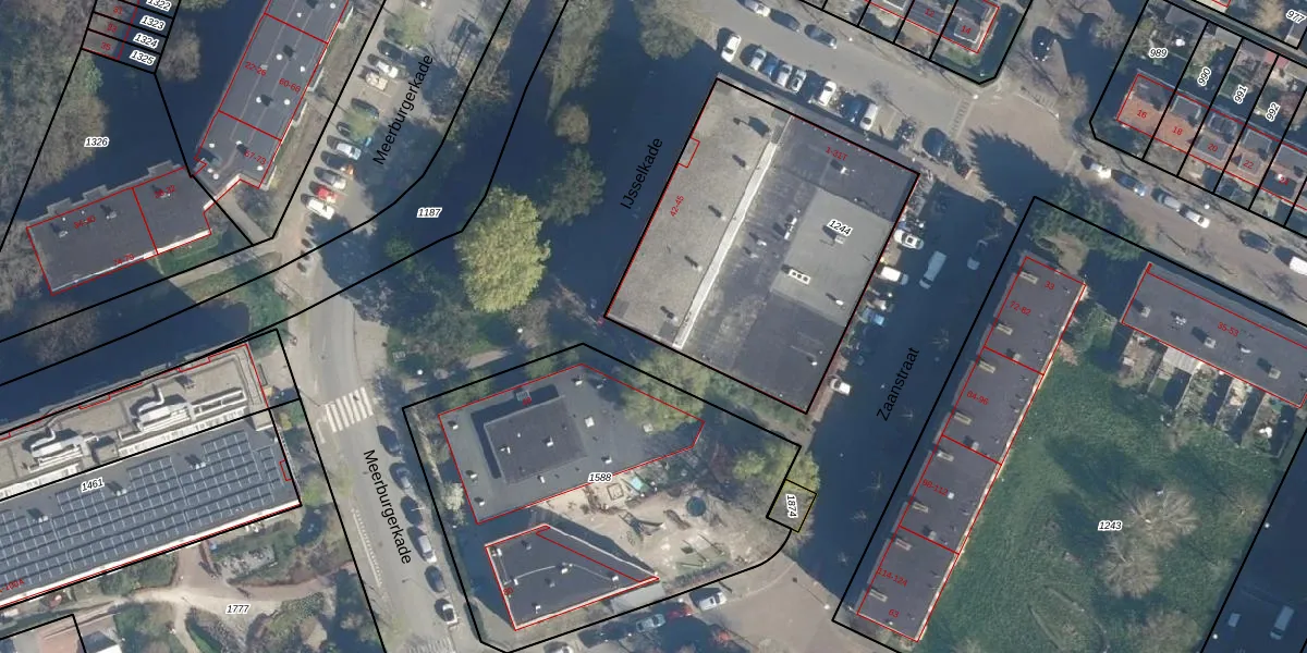 Het adres is gelegen op perceel 1244 in de sectie Q en de kadastrale gemeente Leiden. De kadastrale aanduiding is aldus LDN01-Q-1244. De oppervlakte van het perceel is 1382 m². Dat is groter dan gemiddeld in Leiden, waar de gemiddelde perceeloppervlakte op 703,94 m² ligt. De grootste perceeloppervlakte in de kadastrale gemeente is 51,8 ha. De kleinste oppervlakte bedraagt 0 m². Er zijn 21 adressen aanwezig op het perceel. In de Basisregistratie Kadaster (BRK) werden de grenzen van het perceel geregistreerd op 04-12-2008.