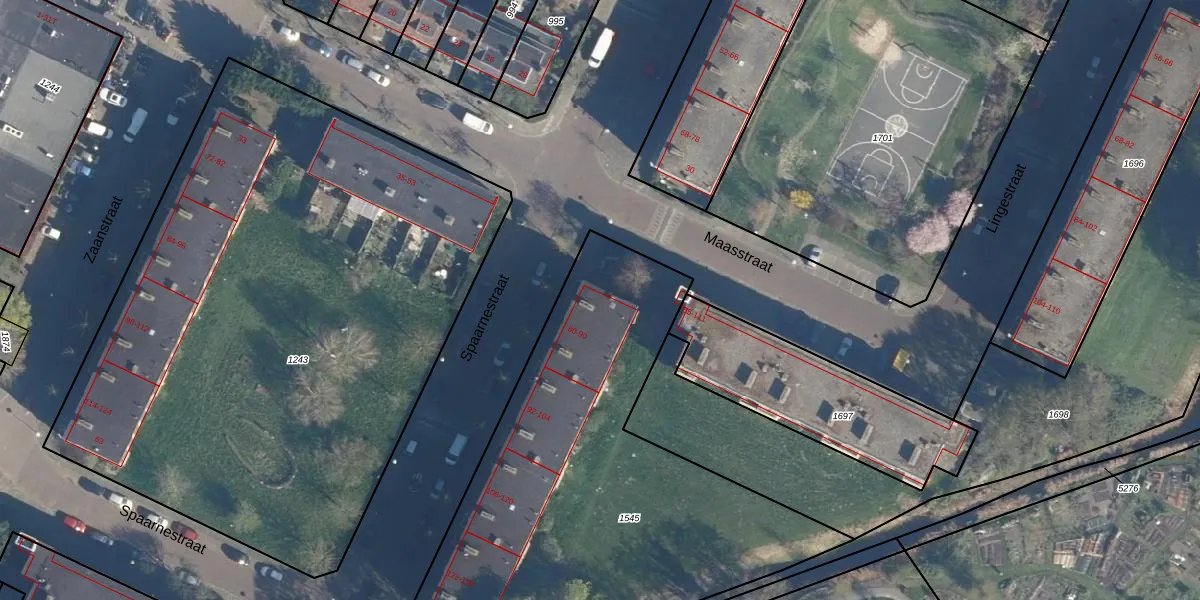 Het perceel waarop Maasstraat 55 staat heeft een oppervlakte van 4083 m². Dit is een zeer groot perceel. De perceeloppervlakte wordt geregistreerd door het Kadaster. Gedetailleerde informatie over de maten van dit perceel kunt u vinden in het rapport Kadastrale kaart met maatvoering van Maasstraat 55.
