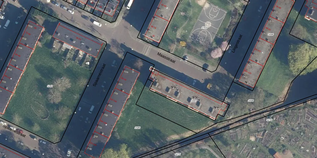 Het perceel waarop Maasstraat 65 staat heeft een oppervlakte van 653 m². Dit is een groot perceel. De perceeloppervlakte wordt geregistreerd door het Kadaster. Gedetailleerde informatie over de maten van dit perceel kunt u vinden in het rapport Kadastrale kaart met maatvoering van Maasstraat 65.