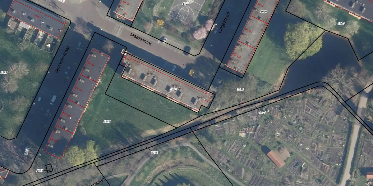 Het perceel waarop Maasstraat 85 staat heeft een oppervlakte van 653 m². Dit is een groot perceel. De perceeloppervlakte wordt geregistreerd door het Kadaster. Gedetailleerde informatie over de maten van dit perceel kunt u vinden in het rapport Kadastrale kaart met maatvoering van Maasstraat 85.