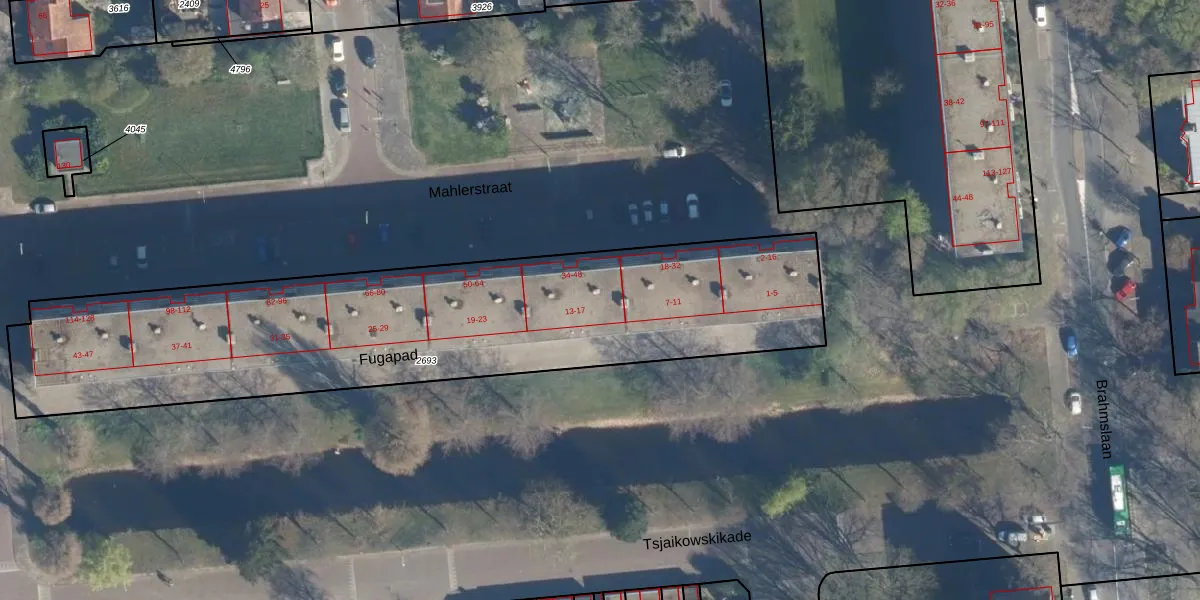 Het perceel waarop Mahlerstraat 40 staat heeft een oppervlakte van 2572 m². Dit is een zeer groot perceel. De perceeloppervlakte wordt geregistreerd door het Kadaster. Gedetailleerde informatie over de maten van dit perceel kunt u vinden in het rapport Kadastrale kaart met maatvoering van Mahlerstraat 40.