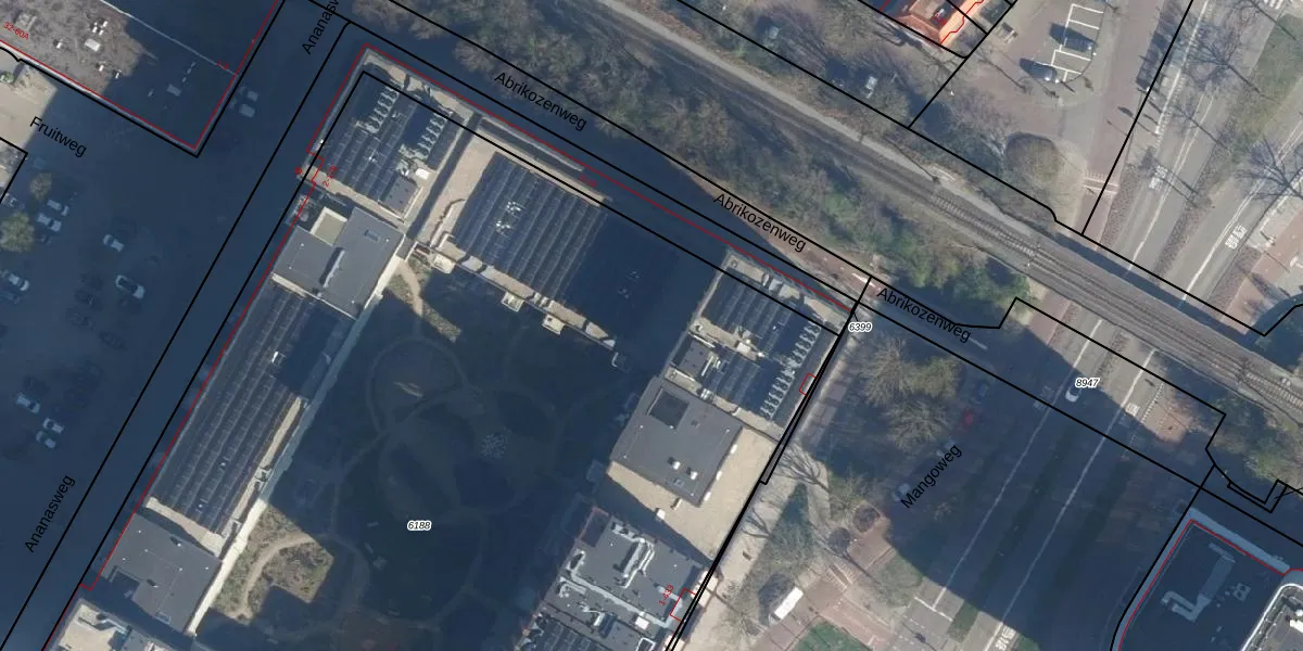 Het perceel waarop het adres ligt is LDN01-O-6188. De afkorting 'LDN01' staat voor kadastrale gemeente Leiden. De oppervlakte van het perceel is 9449 m². Dat is groter dan gemiddeld in Leiden, waar de gemiddelde perceeloppervlakte op 703,94 m² ligt. De grootste perceeloppervlakte in de kadastrale gemeente is 51,8 ha. De kleinste oppervlakte bedraagt 0 m². Er zijn 388 adressen aanwezig op het perceel. De huidige grenzen van het perceel zijn digitaal in de Basisregistratie Kadaster (BRK) geregistreerd op 05-09-2024.