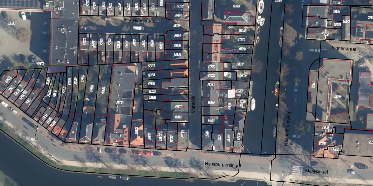 Maredijk 16 is gelegen op kadastraal perceel LDN01L2162. Deze kadastrale aanduiding is uniek en wordt gebruikt door het Kadaster om eigendomsrechten en andere zakelijke rechten vast te leggen. Het perceel maakt onderdeel uit van de kadastrale gemeente Leiden.