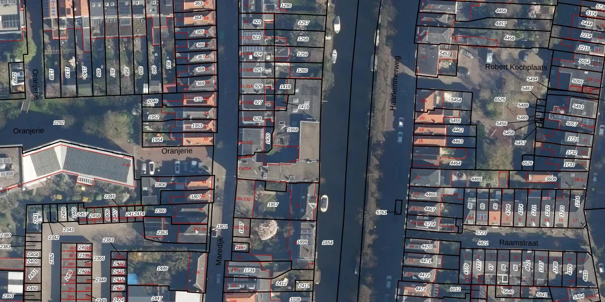 Het adres is gelegen op perceel 1958 in de sectie L en de kadastrale gemeente Leiden. De kadastrale aanduiding is aldus LDN01-L-1958. Het perceel is kleiner dan gemiddeld in Leiden. Het perceel is 623 m² groot, terwijl het gemiddelde ligt op 704,99 m². Het grootste perceel in de kadastrale gemeente is 51,8 ha. Het kleinste perceel heeft een oppervlakte van 0 m². Op het perceel zijn 2 adressen aanwezig. De huidige grenzen van het perceel zijn digitaal in de Basisregistratie Kadaster (BRK) geregistreerd op 09-01-2004.
