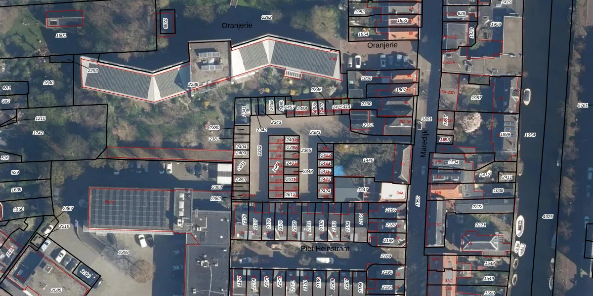 Gebruik de zoekbalk of klik op een perceel voor informatie over de adressen binnen dit perceel.