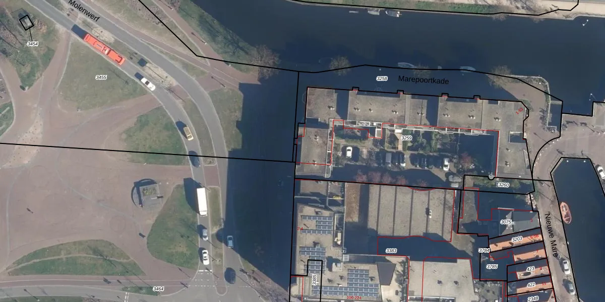 Marepoortkade 10 is gelegen op kadastraal perceel LDN01B3259. Deze kadastrale aanduiding is uniek en wordt gebruikt door het Kadaster om eigendomsrechten en andere zakelijke rechten vast te leggen. Het perceel maakt onderdeel uit van de kadastrale gemeente Leiden.