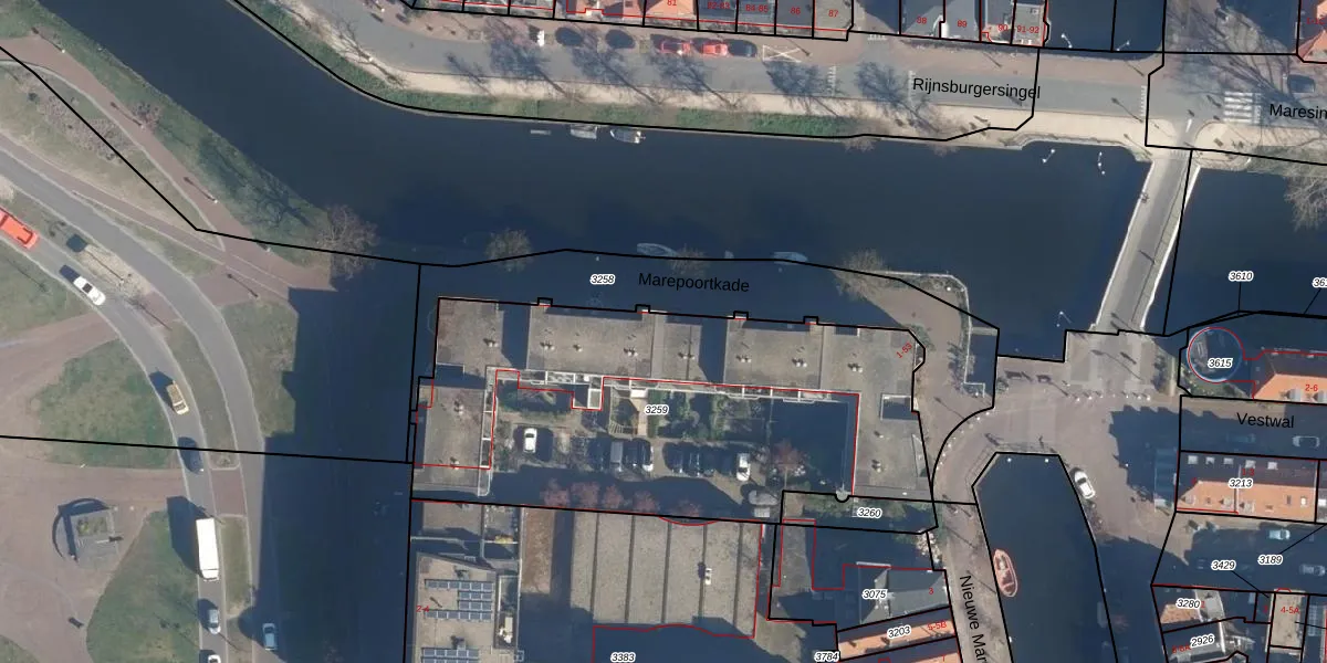 Marepoortkade 20 is gelegen op kadastraal perceel LDN01B3259. Deze kadastrale aanduiding is uniek en wordt gebruikt door het Kadaster om eigendomsrechten en andere zakelijke rechten vast te leggen. Het perceel maakt onderdeel uit van de kadastrale gemeente Leiden.