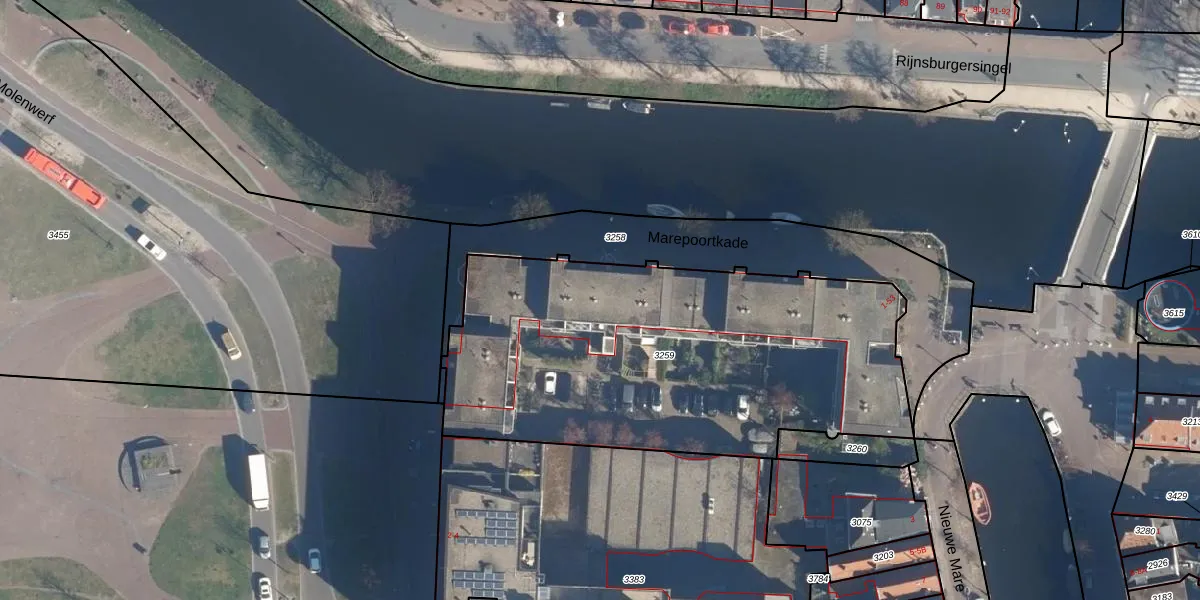 Marepoortkade 47 is gelegen op kadastraal perceel LDN01B3259. Deze kadastrale aanduiding is uniek en wordt gebruikt door het Kadaster om eigendomsrechten en andere zakelijke rechten vast te leggen. Het perceel maakt onderdeel uit van de kadastrale gemeente Leiden.