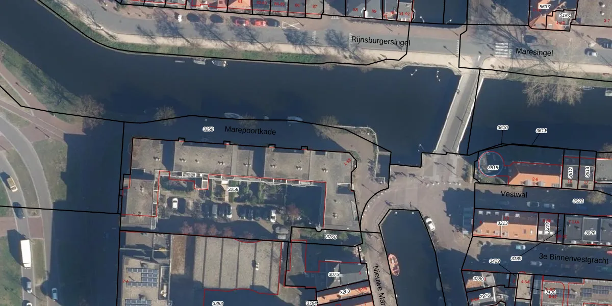 Marepoortkade 5 is gelegen op kadastraal perceel LDN01B3259. Deze kadastrale aanduiding is uniek en wordt gebruikt door het Kadaster om eigendomsrechten en andere zakelijke rechten vast te leggen. Het perceel maakt onderdeel uit van de kadastrale gemeente Leiden.