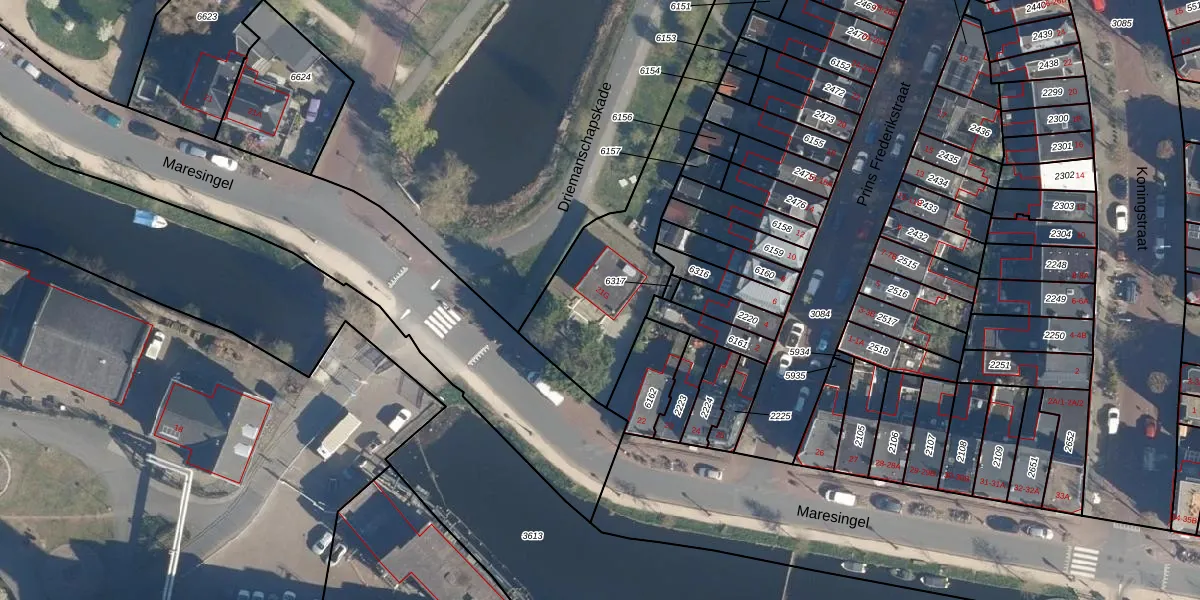 Het perceel waarop Maresingel 21-G staat heeft een oppervlakte van 2852 m². Dit is een zeer groot perceel. De perceeloppervlakte wordt geregistreerd door het Kadaster. Gedetailleerde informatie over de maten van dit perceel kunt u vinden in het rapport Kadastrale kaart met maatvoering van Maresingel 21-G.