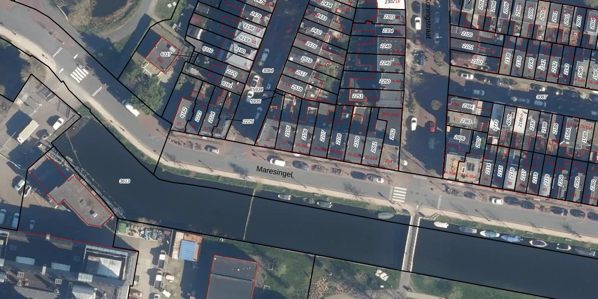 Maresingel 28 is gelegen op kadastraal perceel LDN01K2106. Deze kadastrale aanduiding is uniek en wordt gebruikt door het Kadaster om eigendomsrechten en andere zakelijke rechten vast te leggen. Het perceel maakt onderdeel uit van de kadastrale gemeente Leiden.