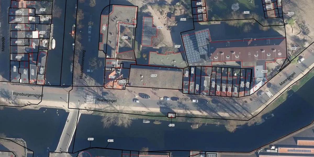 Maresingel 3-C is gelegen op kadastraal perceel LDN01K5105. Deze kadastrale aanduiding is uniek en wordt gebruikt door het Kadaster om eigendomsrechten en andere zakelijke rechten vast te leggen. Het perceel maakt onderdeel uit van de kadastrale gemeente Leiden.