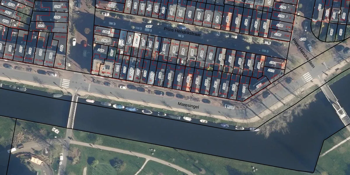 Het perceel waarop Maresingel 44 staat heeft een oppervlakte van 75 m². Dit is een klein perceel. De perceeloppervlakte wordt geregistreerd door het Kadaster. Gedetailleerde informatie over de maten van dit perceel kunt u vinden in het rapport Kadastrale kaart met maatvoering van Maresingel 44.