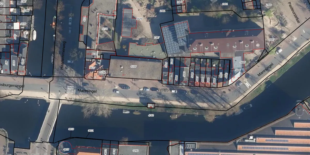 Maresingel 7 is gelegen op kadastraal perceel LDN01K5105. Deze kadastrale aanduiding is uniek en wordt gebruikt door het Kadaster om eigendomsrechten en andere zakelijke rechten vast te leggen. Het perceel maakt onderdeel uit van de kadastrale gemeente Leiden.