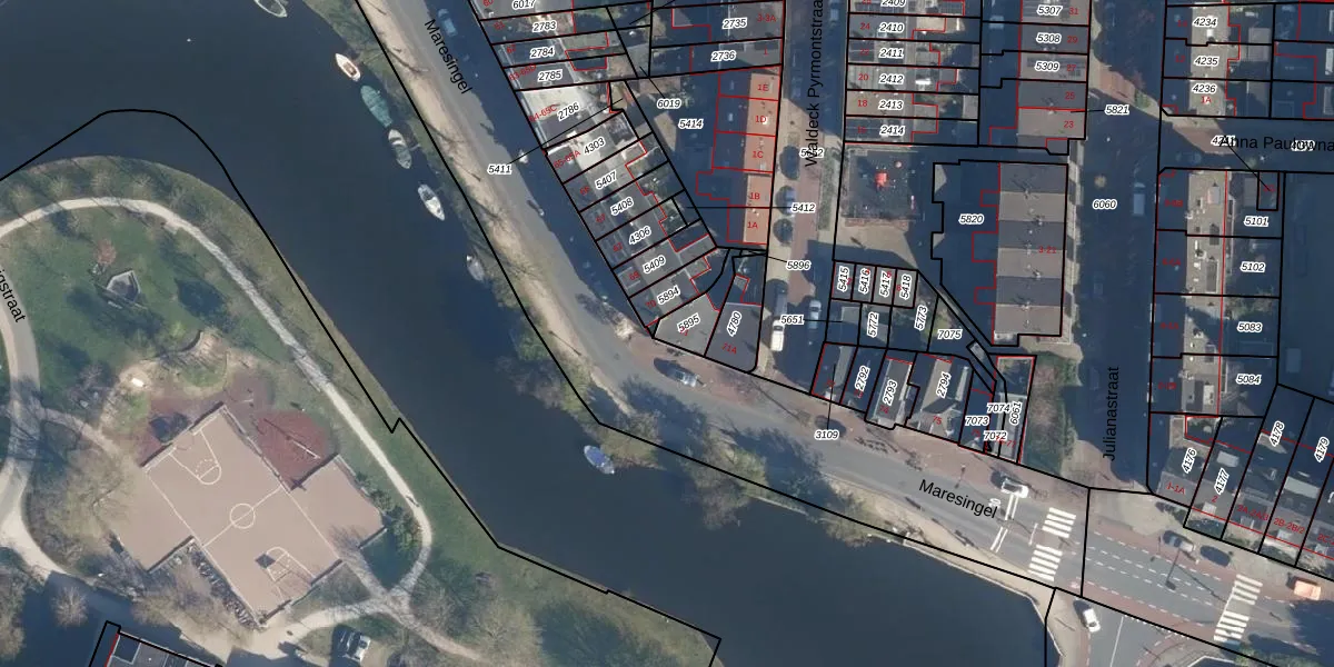 Het perceel waarop Maresingel 71 staat heeft een oppervlakte van 78 m². Dit is een klein perceel. De perceeloppervlakte wordt geregistreerd door het Kadaster. Gedetailleerde informatie over de maten van dit perceel kunt u vinden in het rapport Kadastrale kaart met maatvoering van Maresingel 71.