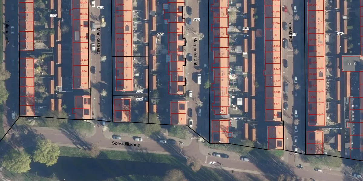 Het perceel waarop Margrietstraat 6 staat heeft een oppervlakte van 1688 m². Dit is een zeer groot perceel. De perceeloppervlakte wordt geregistreerd door het Kadaster. Gedetailleerde informatie over de maten van dit perceel kunt u vinden in het rapport Kadastrale kaart met maatvoering van Margrietstraat 6.