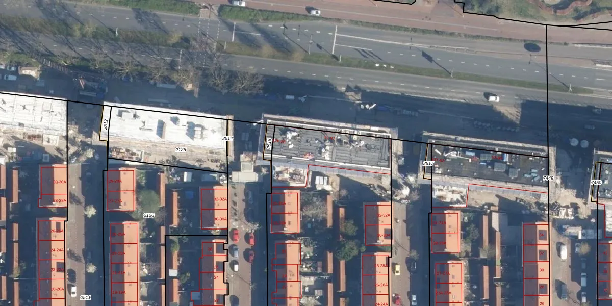 Het adres is gelegen op perceel 1492 in de sectie N en de kadastrale gemeente Leiden. De kadastrale aanduiding is aldus LDN01-N-1492. De gemiddelde perceeloppervlakte in de kadastrale gemeente Leiden is 703,94 m². Dit perceel is met zijn 5205 m² dus groter dan gemiddeld. De grootste perceeloppervlakte in de kadastrale gemeente is 51,8 ha. De kleinste oppervlakte bedraagt 0 m². Op het perceel zijn 74 adressen aanwezig. De huidige grenzen van het perceel zijn digitaal in de Basisregistratie Kadaster (BRK) geregistreerd op 31-10-2024.
