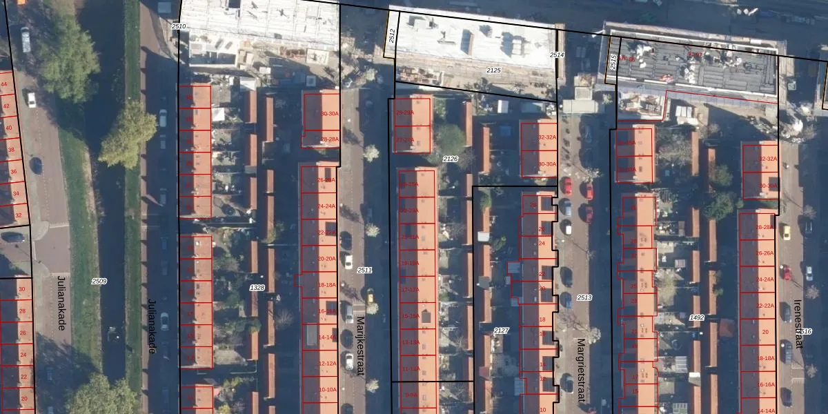Het perceel waarop Marijkestraat 23-A staat heeft een oppervlakte van 1878 m². Dit is een zeer groot perceel. De perceeloppervlakte wordt geregistreerd door het Kadaster. Gedetailleerde informatie over de maten van dit perceel kunt u vinden in het rapport Kadastrale kaart met maatvoering van Marijkestraat 23-A.