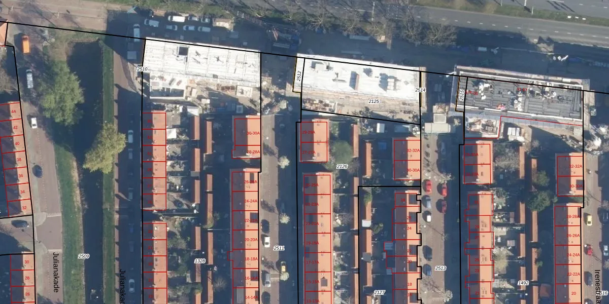 Het adres ligt op het perceel LDN01-N-2126, dat zich in de kadastrale gemeente Leiden bevindt. De gemiddelde perceeloppervlakte in de kadastrale gemeente Leiden is 703,94 m². Dit perceel is met zijn 1878 m² dus groter dan gemiddeld. Het grootste perceel in de kadastrale gemeente is 51,8 ha. Het kleinste perceel heeft een oppervlakte van 0 m². Er zijn 24 adressen aanwezig op het perceel. De huidige grenzen van het perceel zijn digitaal in de Basisregistratie Kadaster (BRK) geregistreerd op 31-10-2024.