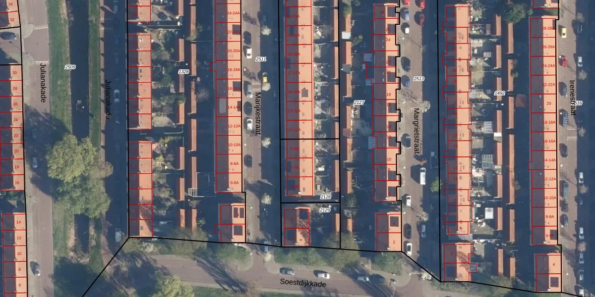 Het perceel waarop Marijkestraat 9-A staat heeft een oppervlakte van 428 m². Dit is een groot perceel. De perceeloppervlakte wordt geregistreerd door het Kadaster. Gedetailleerde informatie over de maten van dit perceel kunt u vinden in het rapport Kadastrale kaart met maatvoering van Marijkestraat 9-A.
