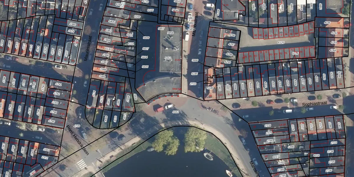 Het adres is gelegen op perceel 5551 in de sectie K en de kadastrale gemeente Leiden. De kadastrale aanduiding is aldus LDN01-K-5551. Het perceel is met 1055 m² relatief groot. Het gemiddelde ligt in de kadastrale gemeente Leiden op 703,99 m². Het kleinste perceel in de kadastrale gemeente is 0 m² groot. De grootste perceeloppervlakte is 51,8 ha. Op het perceel zijn 31 adressen aanwezig. In de Basisregistratie Kadaster (BRK) werden de grenzen van het perceel geregistreerd op 16-04-2010.