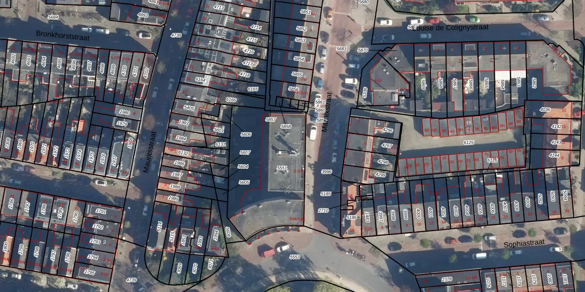 Het adres is gelegen op perceel 5551 in de sectie K en de kadastrale gemeente Leiden. De kadastrale aanduiding is aldus LDN01-K-5551. Het perceel is met 1055 m² relatief groot. Het gemiddelde ligt in de kadastrale gemeente Leiden op 703,99 m². Het kleinste perceel in de kadastrale gemeente is 0 m² groot. De grootste perceeloppervlakte is 51,8 ha. Op het perceel zijn 31 adressen aanwezig. De laatste wijziging in het de Basisregistratie Kadaster (BRK) was op 16-04-2010.