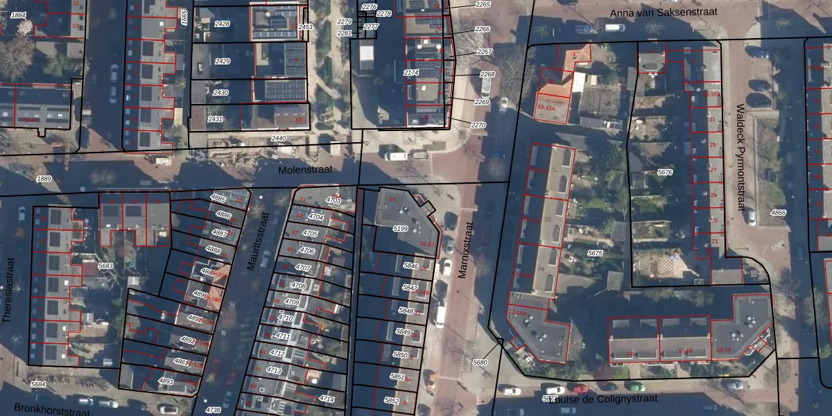 Het perceel waarop Marnixstraat 20 staat heeft een oppervlakte van 232 m². Dit is een middelgroot perceel. De perceeloppervlakte wordt geregistreerd door het Kadaster. Gedetailleerde informatie over de maten van dit perceel kunt u vinden in het rapport Kadastrale kaart met maatvoering van Marnixstraat 20.