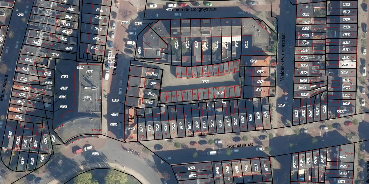 Het adres ligt op het perceel LDN01-K-6125, dat zich in de kadastrale gemeente Leiden bevindt. De oppervlakte van het perceel is 880 m². Dat is groter dan gemiddeld in Leiden, waar de gemiddelde perceeloppervlakte op 703,99 m² ligt. De grootste perceeloppervlakte in de kadastrale gemeente is 51,8 ha. De kleinste oppervlakte bedraagt 0 m². Er zijn 27 adressen aanwezig op het perceel. De laatste wijziging in het de Basisregistratie Kadaster (BRK) was op 23-11-2009.