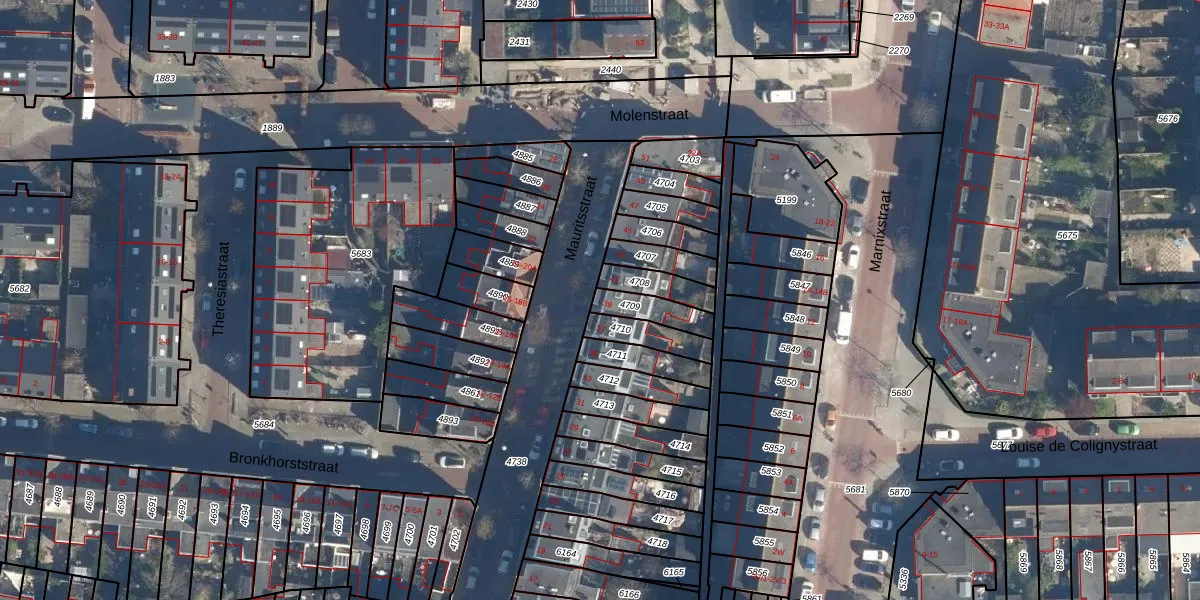 Het perceel waarop Mauritsstraat 39 staat heeft een oppervlakte van 88 m². Dit is een klein perceel. De perceeloppervlakte wordt geregistreerd door het Kadaster. Gedetailleerde informatie over de maten van dit perceel kunt u vinden in het rapport Kadastrale kaart met maatvoering van Mauritsstraat 39.