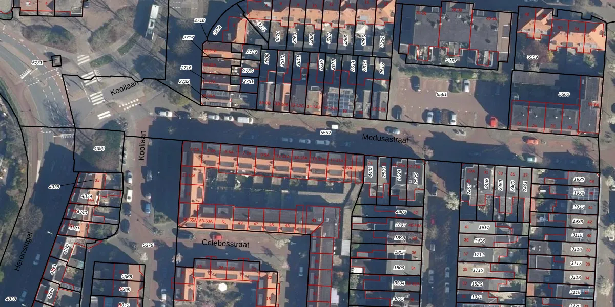 Het perceel waarop Medusastraat 13 staat heeft een oppervlakte van 3193 m². Dit is een zeer groot perceel. De perceeloppervlakte wordt geregistreerd door het Kadaster. Gedetailleerde informatie over de maten van dit perceel kunt u vinden in het rapport Kadastrale kaart met maatvoering van Medusastraat 13.