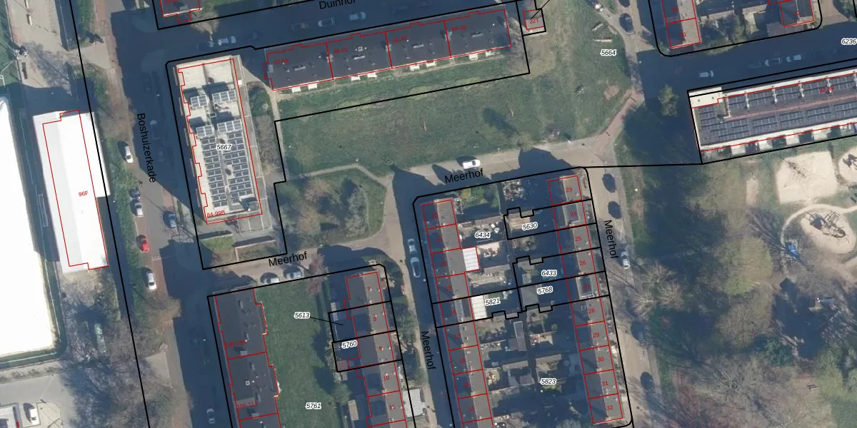 Het perceel waarop Meerhof 22 staat heeft een oppervlakte van 785 m². Dit is een groot perceel. De perceeloppervlakte wordt geregistreerd door het Kadaster. Gedetailleerde informatie over de maten van dit perceel kunt u vinden in het rapport Kadastrale kaart met maatvoering van Meerhof 22.