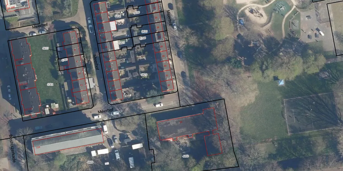 Meerhof 32 is gelegen op kadastraal perceel LDN01O5823. Deze kadastrale aanduiding is uniek en wordt gebruikt door het Kadaster om eigendomsrechten en andere zakelijke rechten vast te leggen. Het perceel maakt onderdeel uit van de kadastrale gemeente Leiden.