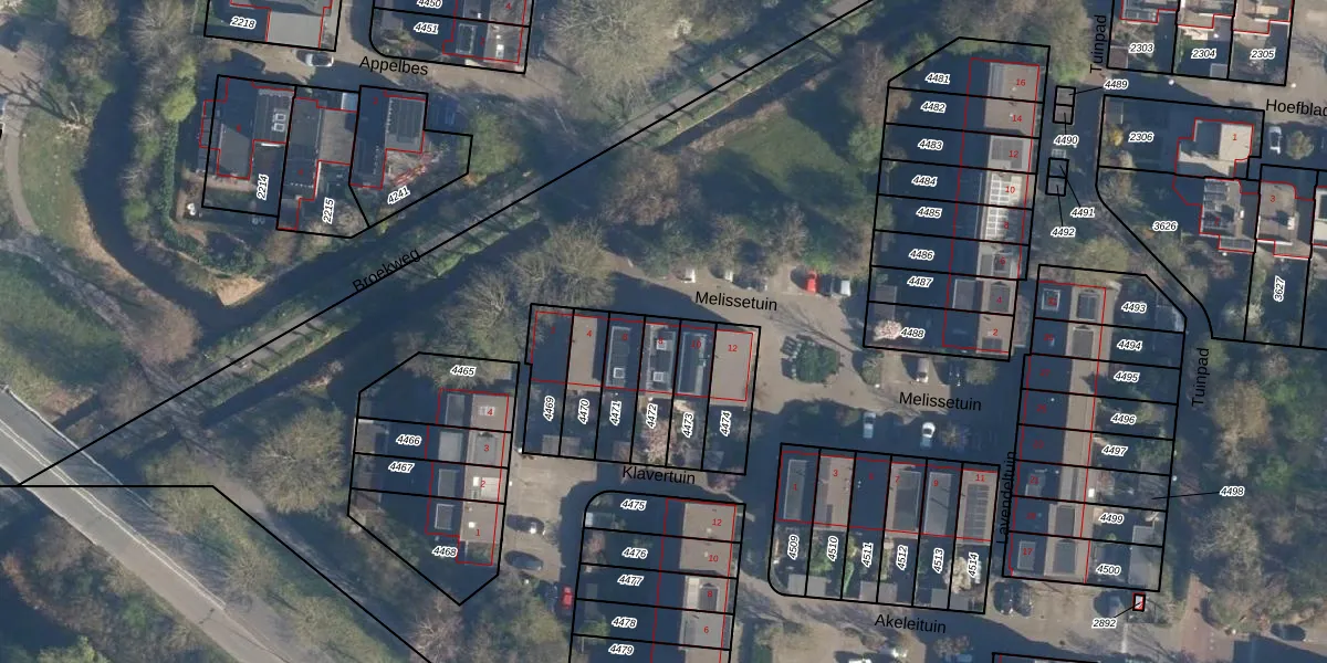 Gebruik de zoekbalk of klik op een perceel voor informatie over de adressen binnen dit perceel.