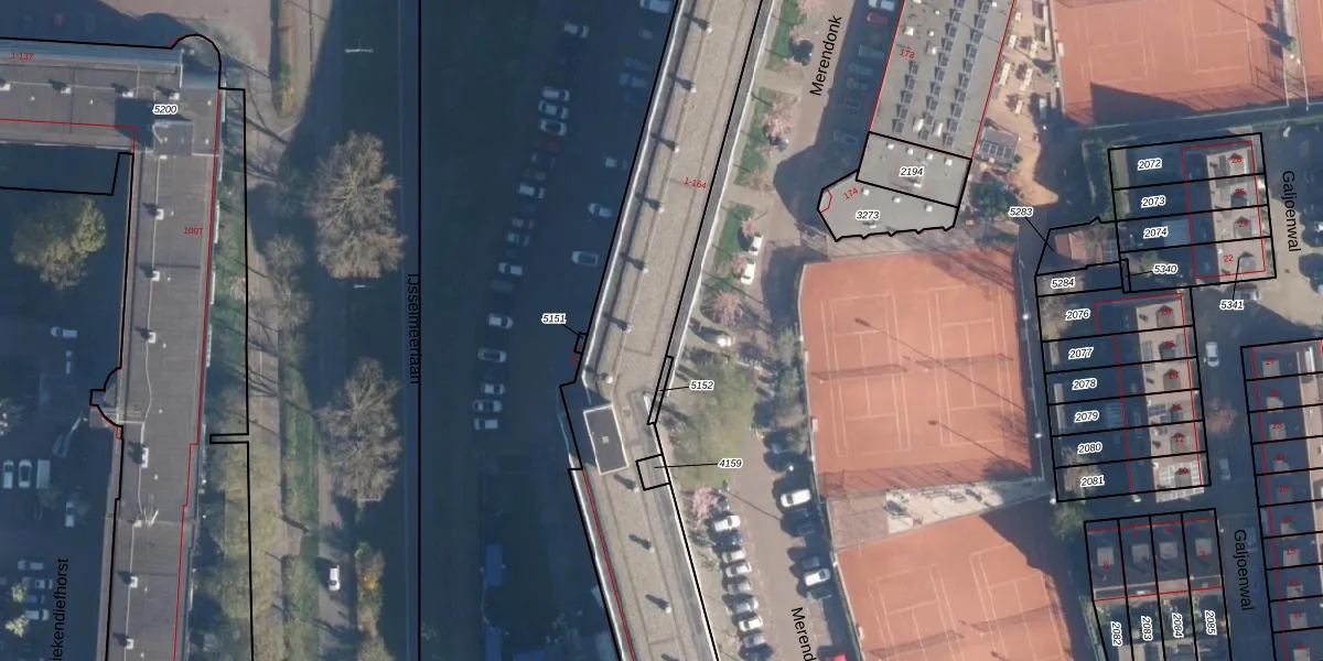 Het perceel waarop Merendonk 19 staat heeft een oppervlakte van 1930 m². Dit is een zeer groot perceel. De perceeloppervlakte wordt geregistreerd door het Kadaster. Gedetailleerde informatie over de maten van dit perceel kunt u vinden in het rapport Kadastrale kaart met maatvoering van Merendonk 19.