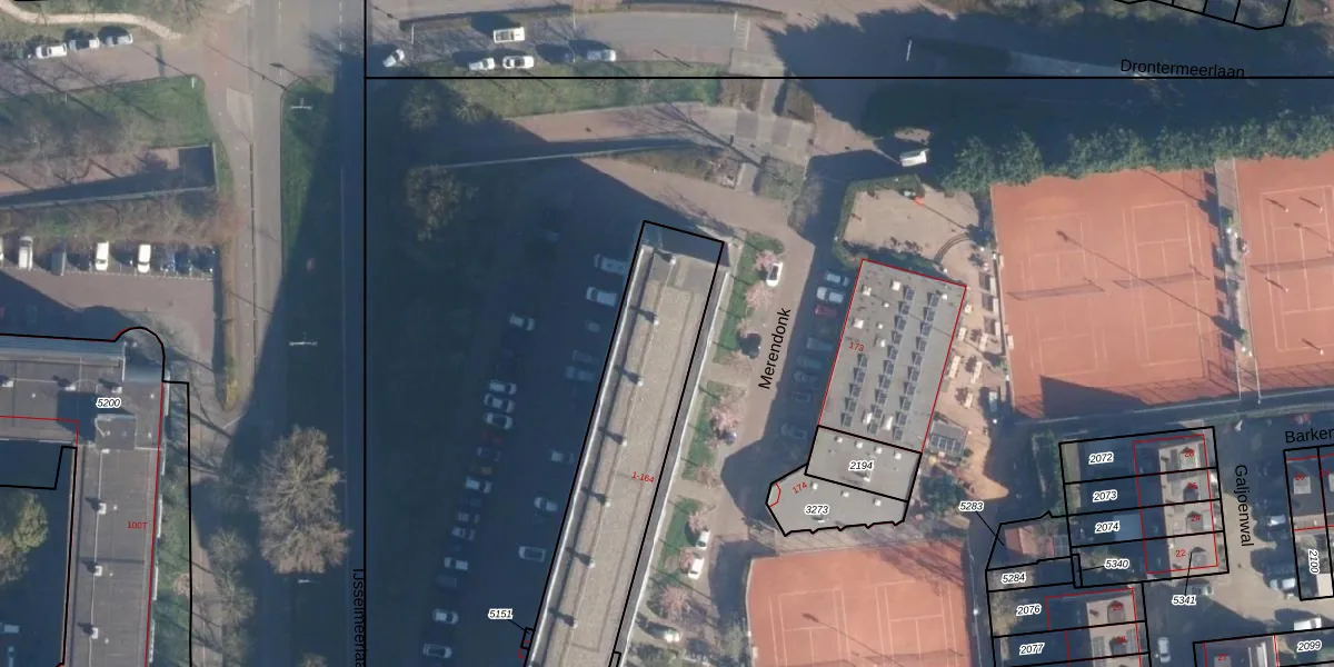 Het perceel waarop Merendonk 83 staat heeft een oppervlakte van 1930 m². Dit is een zeer groot perceel. De perceeloppervlakte wordt geregistreerd door het Kadaster. Gedetailleerde informatie over de maten van dit perceel kunt u vinden in het rapport Kadastrale kaart met maatvoering van Merendonk 83.
