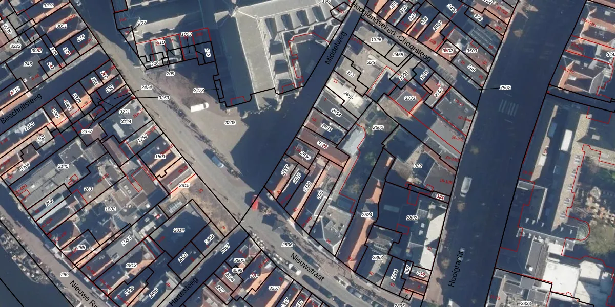 Middelweg 1-A is gelegen op kadastraal perceel LDN01I2636. Deze kadastrale aanduiding is uniek en wordt gebruikt door het Kadaster om eigendomsrechten en andere zakelijke rechten vast te leggen. Het perceel maakt onderdeel uit van de kadastrale gemeente Leiden.