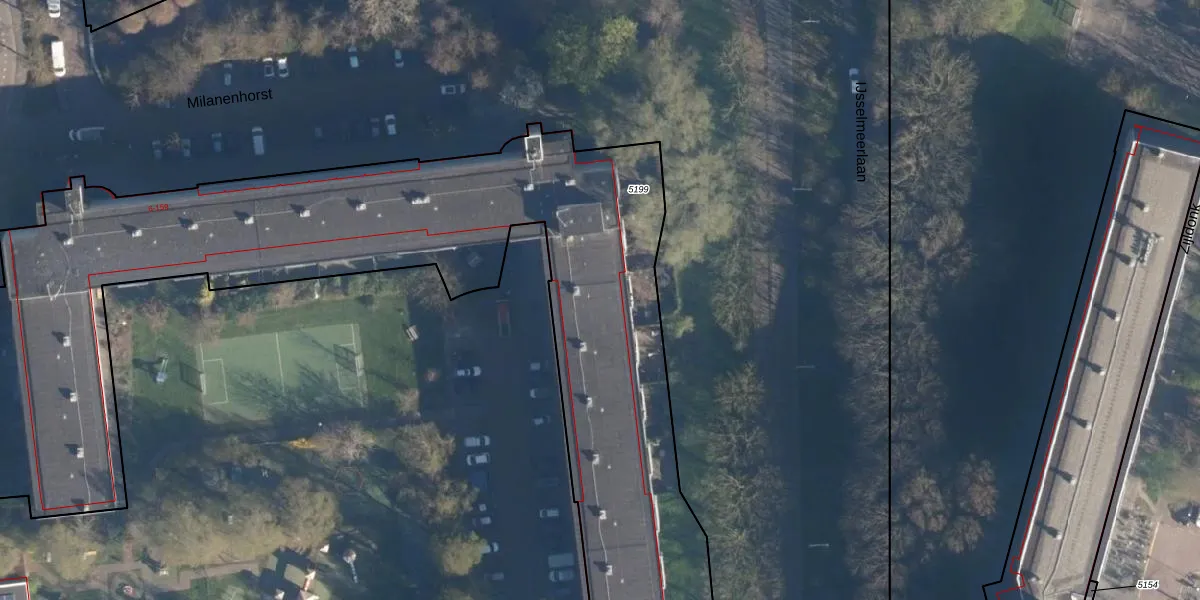 Het perceel waarop Milanenhorst 125 staat heeft een oppervlakte van 5518 m². Dit is een zeer groot perceel. De perceeloppervlakte wordt geregistreerd door het Kadaster. Gedetailleerde informatie over de maten van dit perceel kunt u vinden in het rapport Kadastrale kaart met maatvoering van Milanenhorst 125.