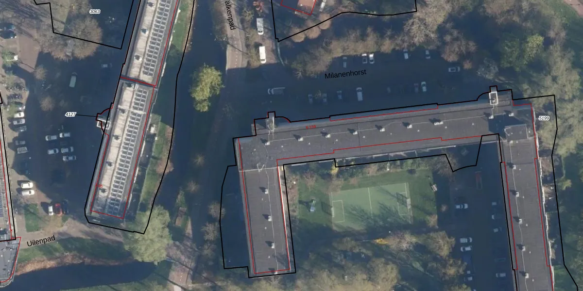Het perceel waarop Milanenhorst 155 staat heeft een oppervlakte van 5518 m². Dit is een zeer groot perceel. De perceeloppervlakte wordt geregistreerd door het Kadaster. Gedetailleerde informatie over de maten van dit perceel kunt u vinden in het rapport Kadastrale kaart met maatvoering van Milanenhorst 155.