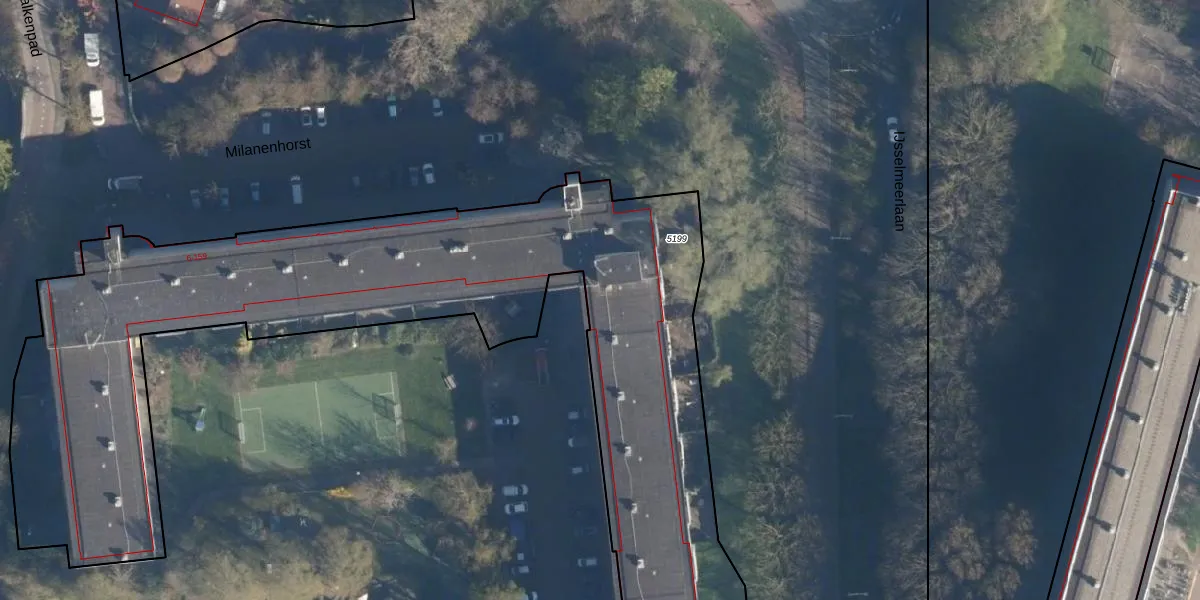 Het perceel waarop Milanenhorst 36 staat heeft een oppervlakte van 5518 m². Dit is een zeer groot perceel. De perceeloppervlakte wordt geregistreerd door het Kadaster. Gedetailleerde informatie over de maten van dit perceel kunt u vinden in het rapport Kadastrale kaart met maatvoering van Milanenhorst 36.