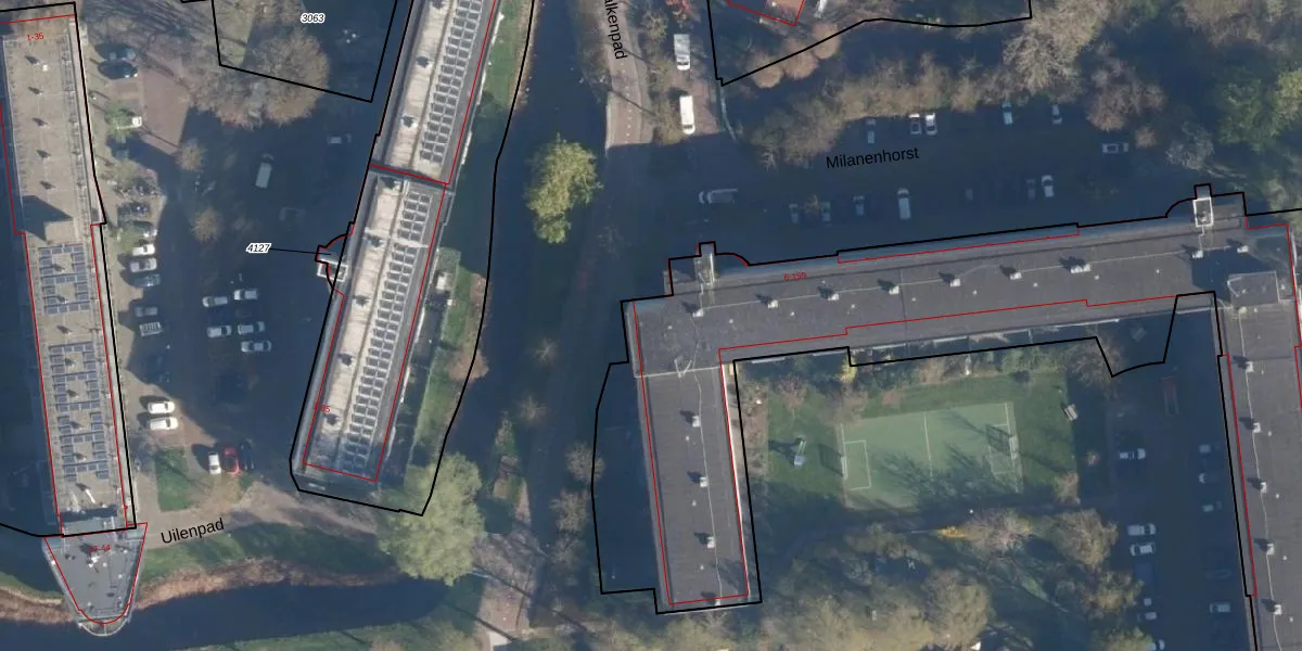 Het perceel waarop Milanenhorst 46 staat heeft een oppervlakte van 5518 m². Dit is een zeer groot perceel. De perceeloppervlakte wordt geregistreerd door het Kadaster. Gedetailleerde informatie over de maten van dit perceel kunt u vinden in het rapport Kadastrale kaart met maatvoering van Milanenhorst 46.