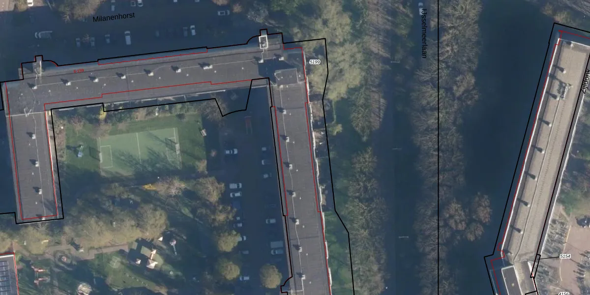 Het perceel waarop Milanenhorst 64 staat heeft een oppervlakte van 5518 m². Dit is een zeer groot perceel. De perceeloppervlakte wordt geregistreerd door het Kadaster. Gedetailleerde informatie over de maten van dit perceel kunt u vinden in het rapport Kadastrale kaart met maatvoering van Milanenhorst 64.