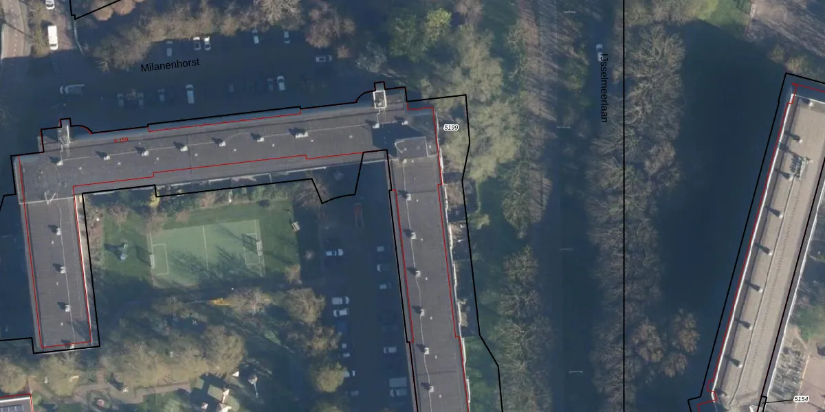 Het perceel waarop Milanenhorst 65 staat heeft een oppervlakte van 5518 m². Dit is een zeer groot perceel. De perceeloppervlakte wordt geregistreerd door het Kadaster. Gedetailleerde informatie over de maten van dit perceel kunt u vinden in het rapport Kadastrale kaart met maatvoering van Milanenhorst 65.
