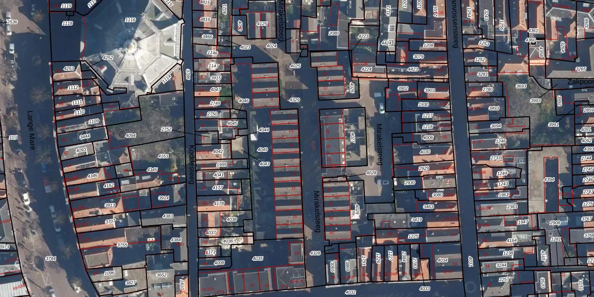 Het perceel waarop Mirakelsteeg 15 staat heeft een oppervlakte van 1010 m². Dit is een zeer groot perceel. De perceeloppervlakte wordt geregistreerd door het Kadaster. Gedetailleerde informatie over de maten van dit perceel kunt u vinden in het rapport Kadastrale kaart met maatvoering van Mirakelsteeg 15.
