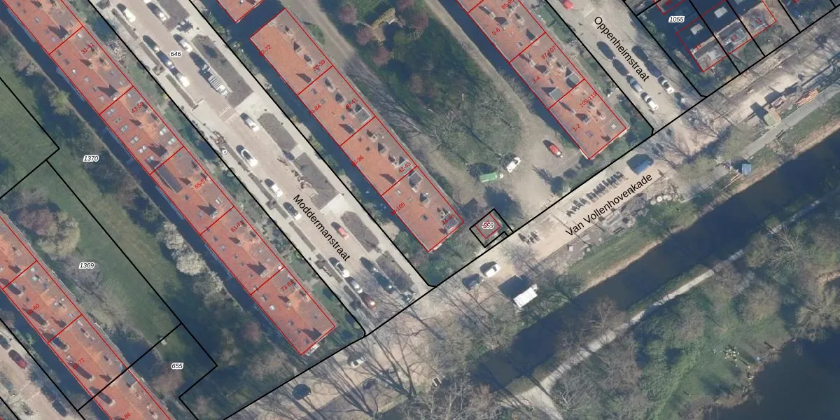 Moddermanstraat 108 is gelegen op kadastraal perceel LDN01Q558. Deze kadastrale aanduiding is uniek en wordt gebruikt door het Kadaster om eigendomsrechten en andere zakelijke rechten vast te leggen. Het perceel maakt onderdeel uit van de kadastrale gemeente Leiden.