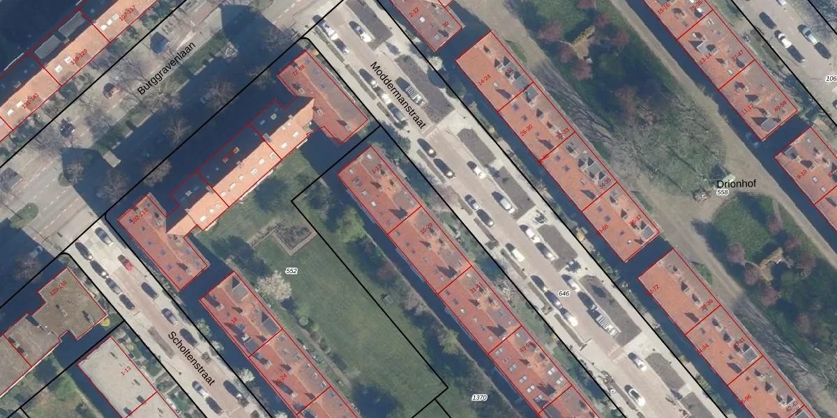Moddermanstraat 13 is gelegen op kadastraal perceel LDN01Q1370. Deze kadastrale aanduiding is uniek en wordt gebruikt door het Kadaster om eigendomsrechten en andere zakelijke rechten vast te leggen. Het perceel maakt onderdeel uit van de kadastrale gemeente Leiden.