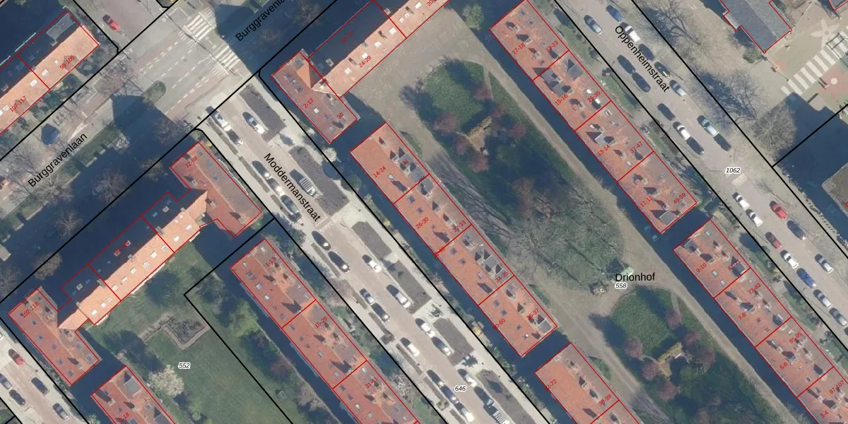 Moddermanstraat 30 is gelegen op kadastraal perceel LDN01Q558. Deze kadastrale aanduiding is uniek en wordt gebruikt door het Kadaster om eigendomsrechten en andere zakelijke rechten vast te leggen. Het perceel maakt onderdeel uit van de kadastrale gemeente Leiden.