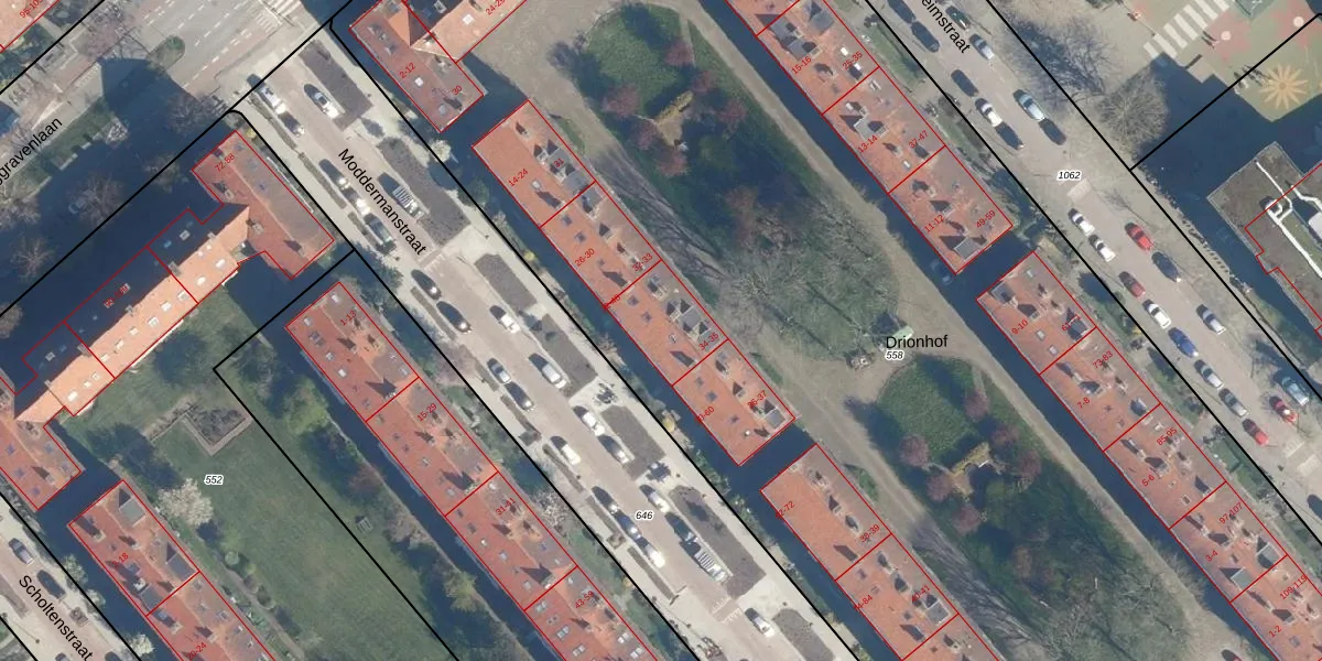 Moddermanstraat 42 is gelegen op kadastraal perceel LDN01Q558. Deze kadastrale aanduiding is uniek en wordt gebruikt door het Kadaster om eigendomsrechten en andere zakelijke rechten vast te leggen. Het perceel maakt onderdeel uit van de kadastrale gemeente Leiden.