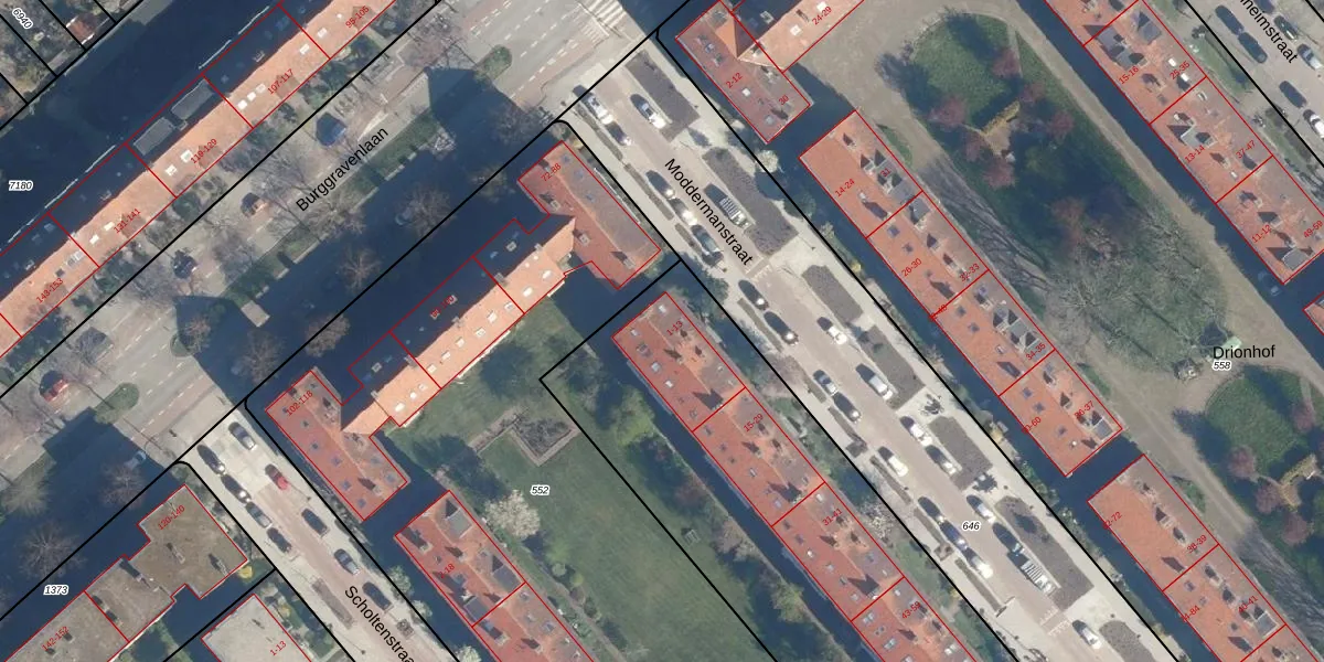 Moddermanstraat 5 is gelegen op kadastraal perceel LDN01Q1370. Deze kadastrale aanduiding is uniek en wordt gebruikt door het Kadaster om eigendomsrechten en andere zakelijke rechten vast te leggen. Het perceel maakt onderdeel uit van de kadastrale gemeente Leiden.