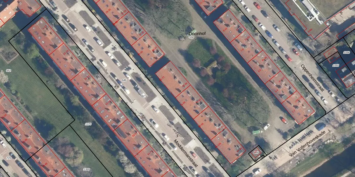 Moddermanstraat 72 is gelegen op kadastraal perceel LDN01Q558. Deze kadastrale aanduiding is uniek en wordt gebruikt door het Kadaster om eigendomsrechten en andere zakelijke rechten vast te leggen. Het perceel maakt onderdeel uit van de kadastrale gemeente Leiden.